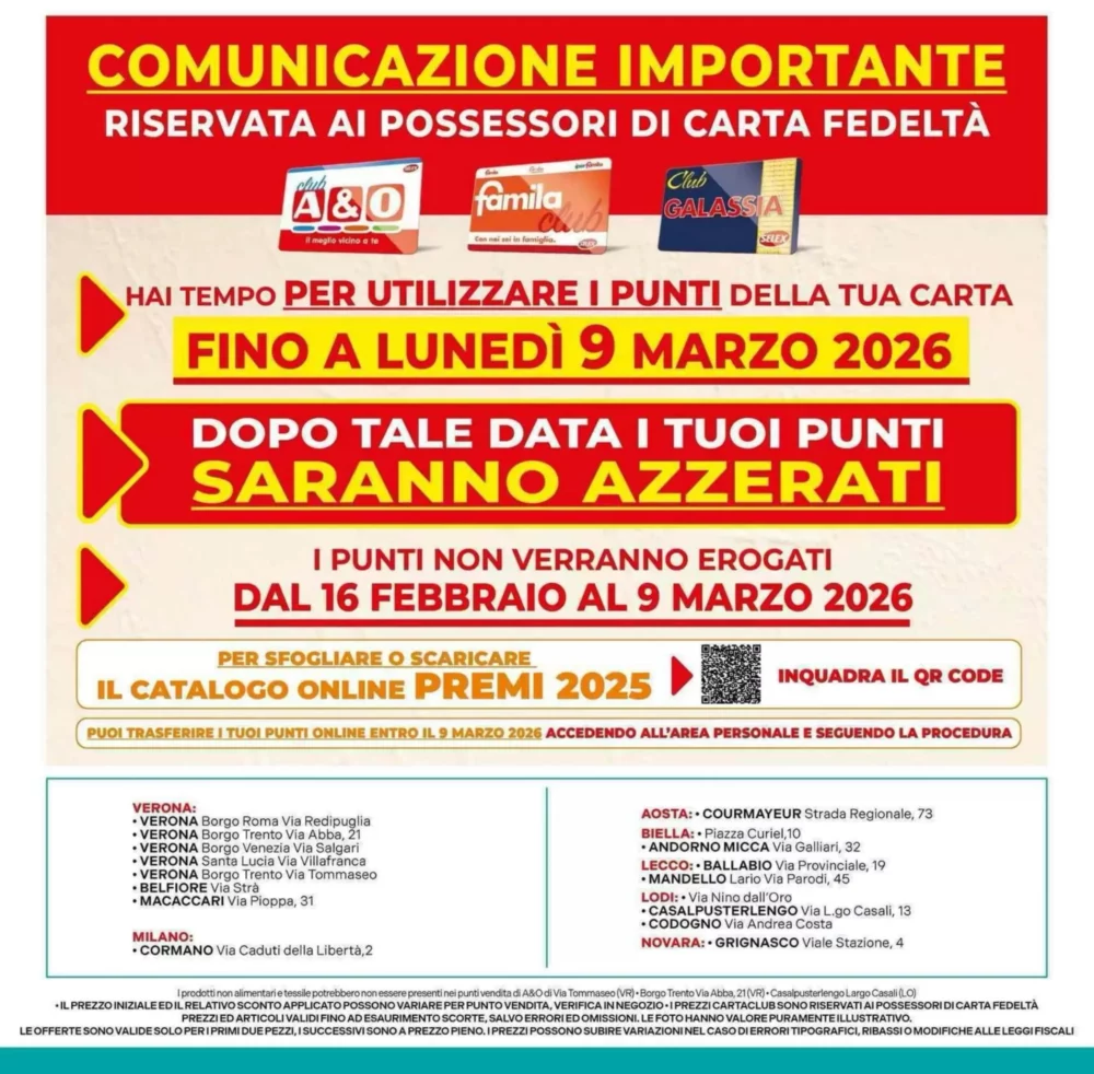Il volantino A&O è attivo dal 25 febbraio al 10 marzo 2026 e propone un totale di 218 offerte in tutta Italia. Scopri subito dove conviene risparmiare.