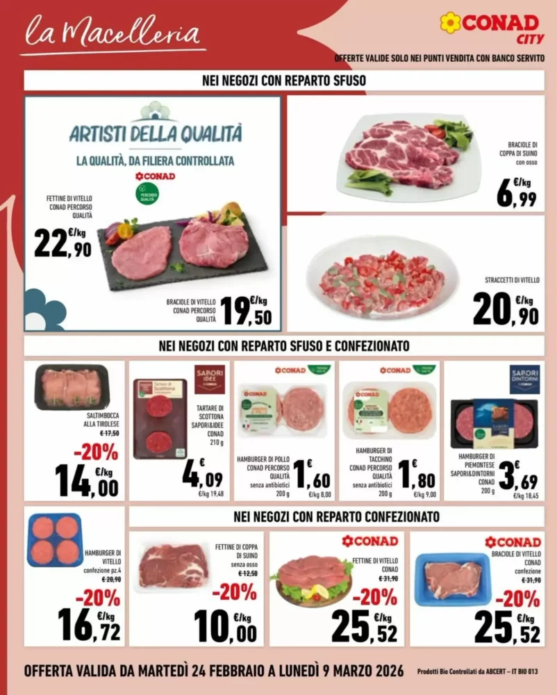 Il volantino di Conad City è attivo dal 24 febbraio al 9 marzo 2026 e propone un totale di 160 offerte distribuite su tutte le categorie del punto vendita.