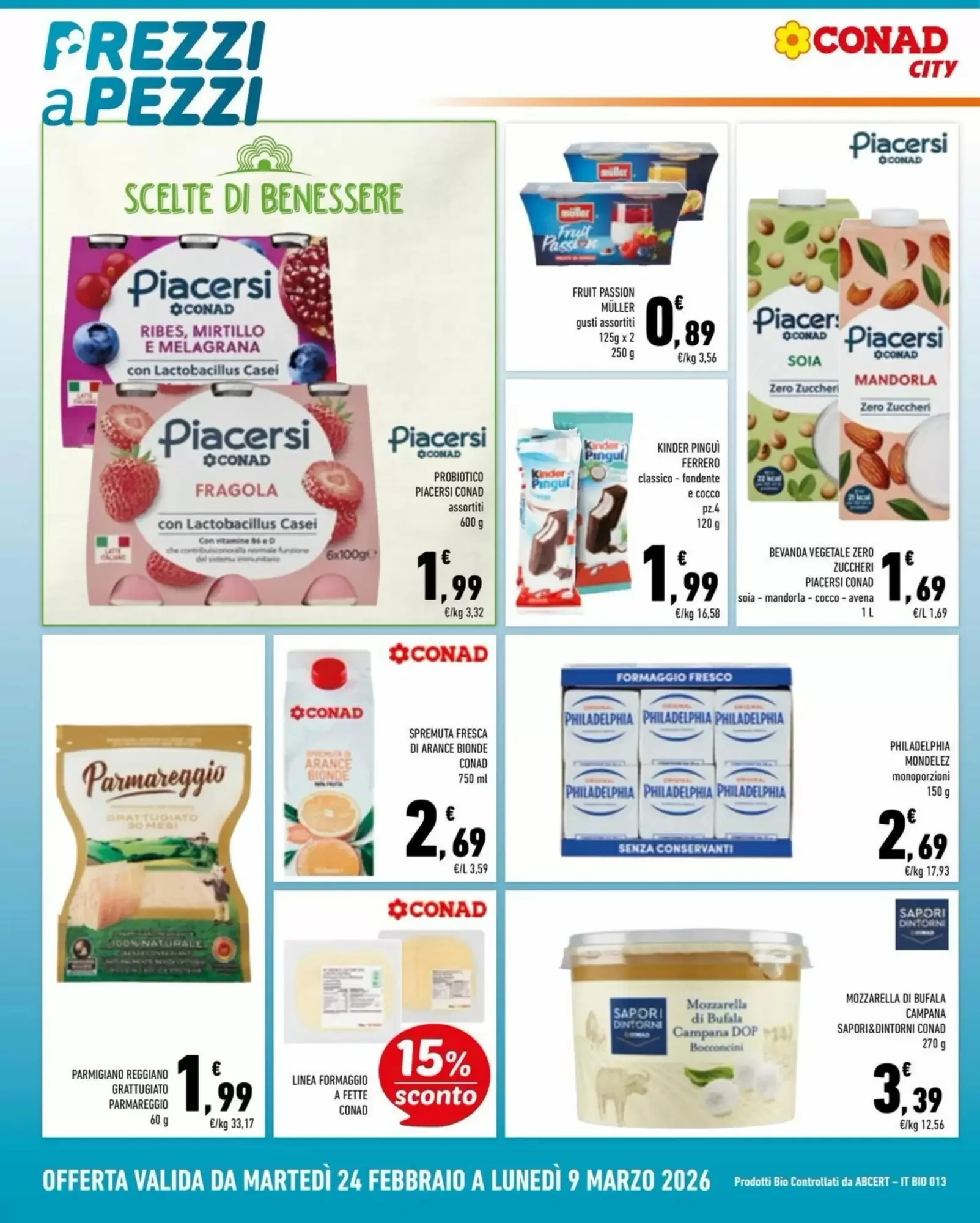 Il volantino di Conad City è attivo dal 24 febbraio al 9 marzo 2026 e propone un totale di 160 offerte distribuite su tutte le categorie del punto vendita.