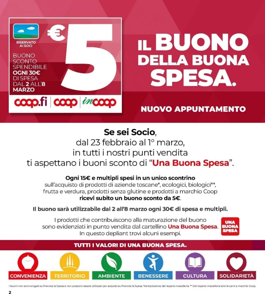 Il nuovo volantino Coop è disponibile nelle regioni della Toscana dal 25 febbraio al 11 marzo 2026, con ben 263 offerte per risparmiare sulla spesa settimanale. Scopri subito le promozioni più convenienti.