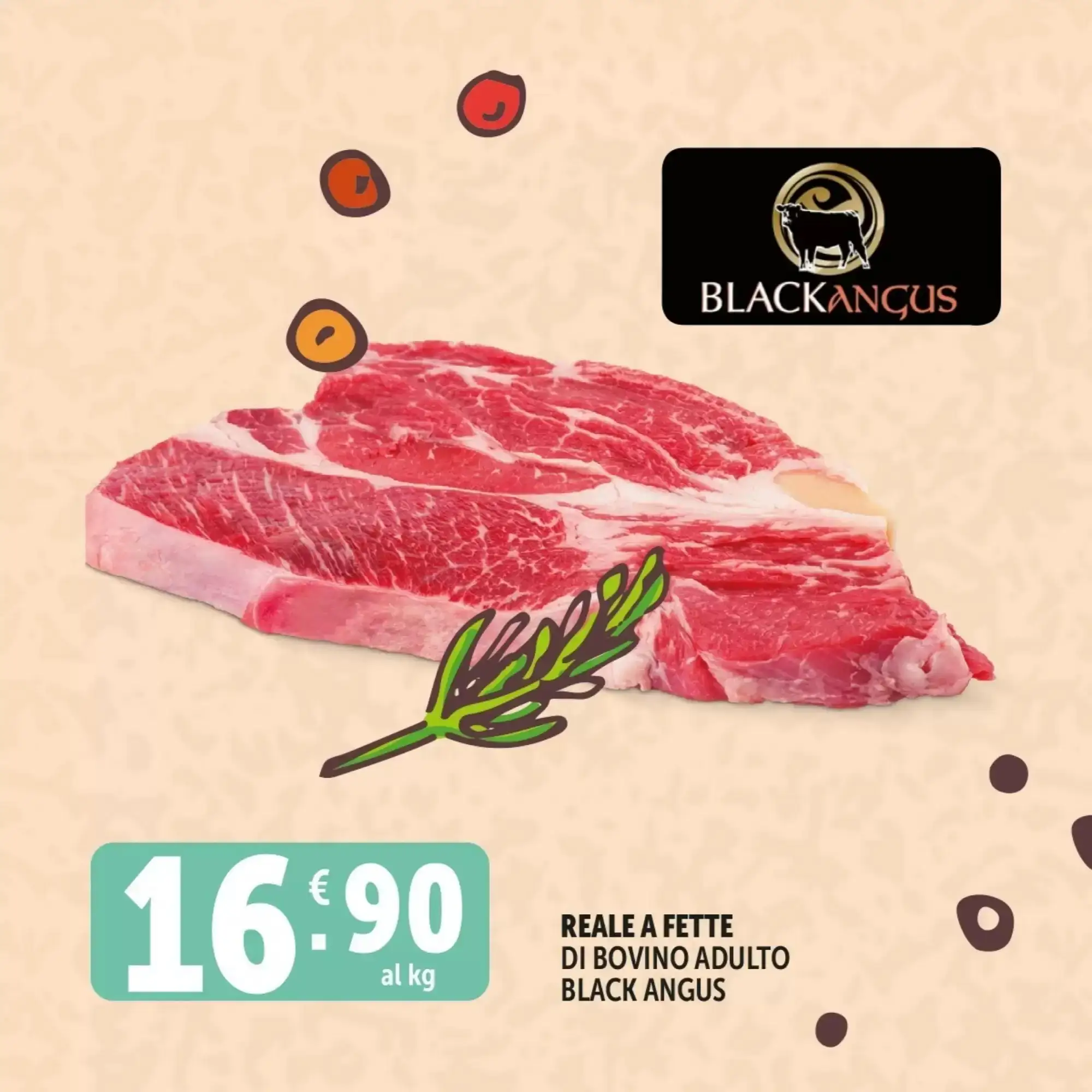 Per gli amanti della buona carne, il volantino propone il reale a fette di bovino adulto Black Angus al kg a 16.9€. Una vera occasione per portare in tavola una carne pregiata, perfetta per grigliate, arrosti o piatti gourmet, a un prezzo decisamente competitivo.