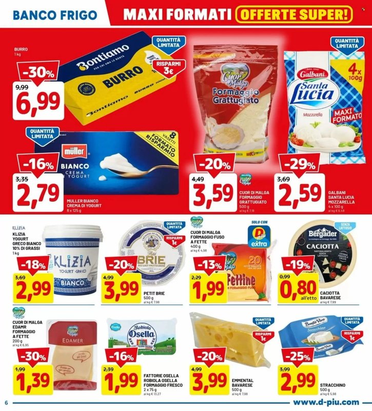 Per gli amanti del formaggio, la promozione include Caciotta Bavarese all’etto a 0.80€. Perfetta per snack, panini o per arricchire le ricette di cucina.