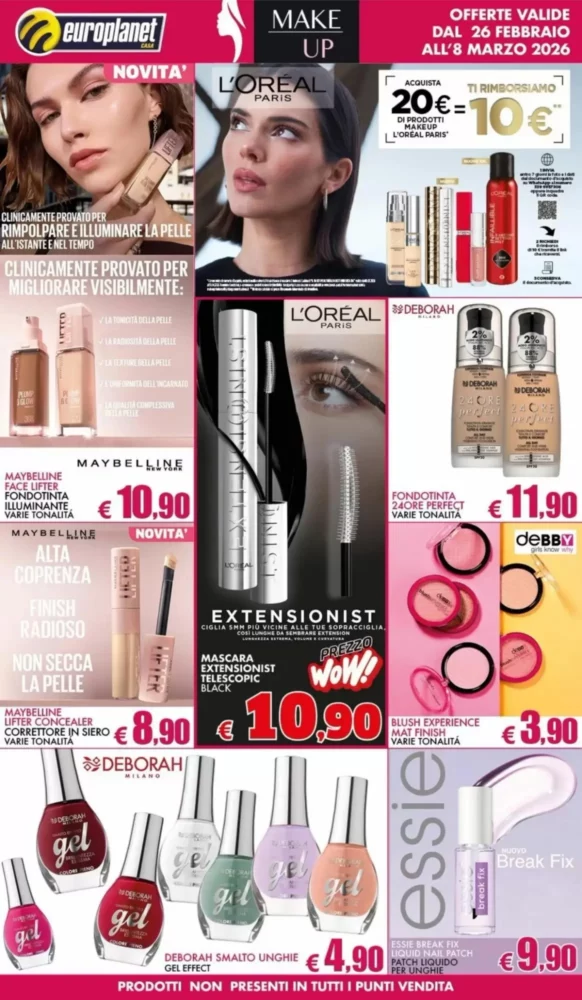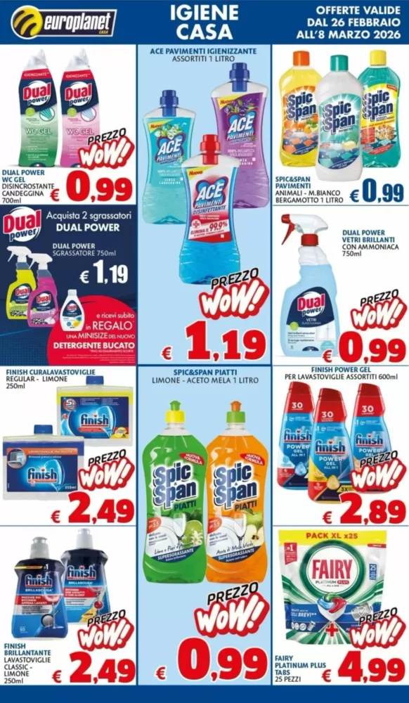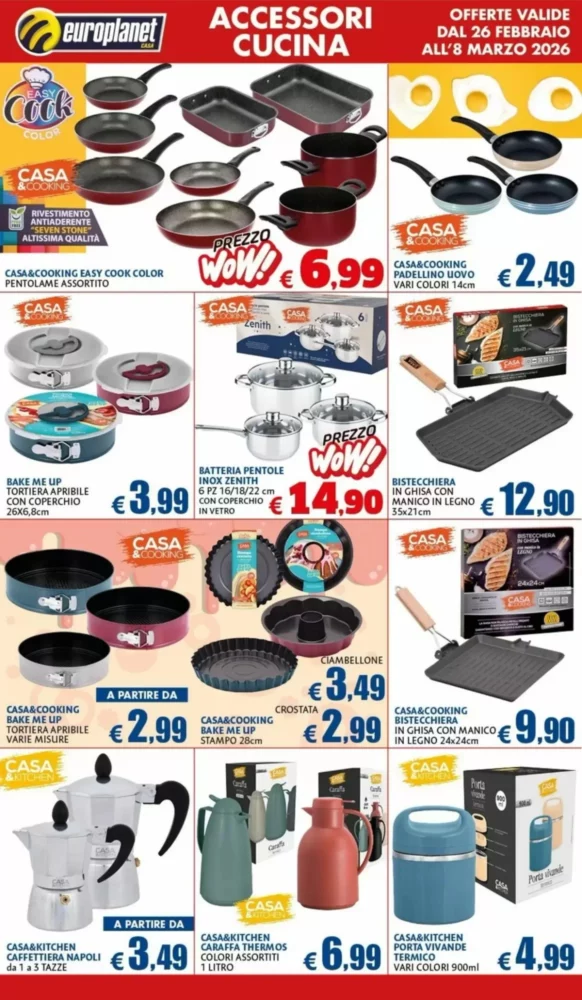 Europlanet Casa propone un volantino ricco di 160 offerte valide in tutta Italia dal 26 Febbraio al 8 Marzo 2026. Scopri subito le promozioni più convenienti per la tua casa e la tua famiglia.