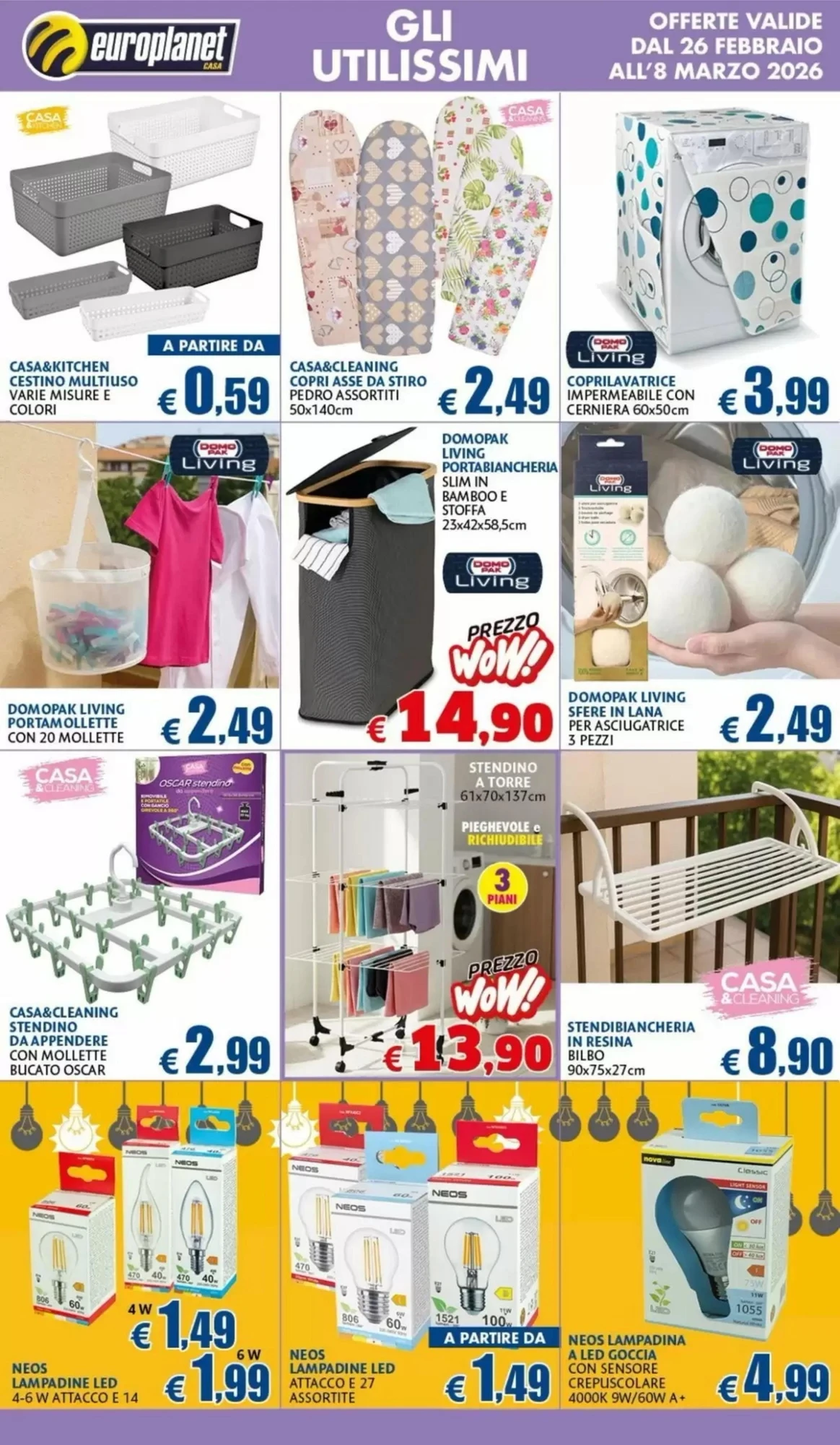 Europlanet Casa propone un volantino ricco di 160 offerte valide in tutta Italia dal 26 Febbraio al 8 Marzo 2026. Scopri subito le promozioni più convenienti per la tua casa e la tua famiglia.