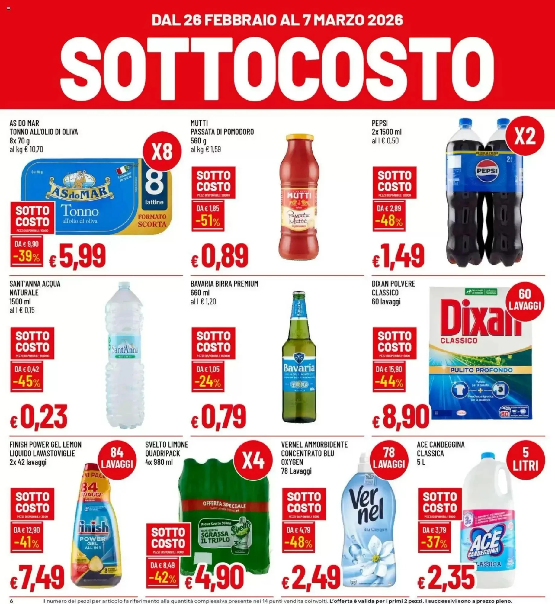 Nel volantino Iperfamila trovate offerte imperdibili per le bevande. L’acqua naturale 1500ml è proposta a soli 0.23€, mentre la birra Premium 660ml costa 0.79€. Ideale per rifornire la dispensa senza spendere troppo.