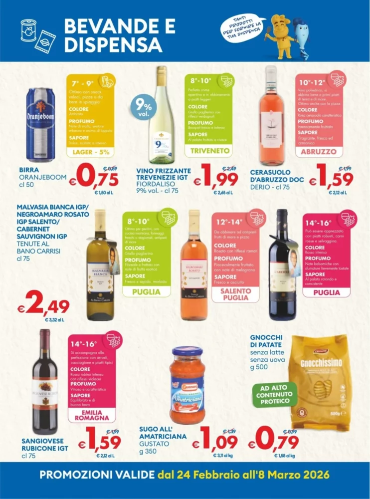Le offerte più interessanti includono Pasta trafilata al bronzo – 0.65€ e Pasta fresca Lettere dall’Italia – 0.69€. Entrambe le tipologie sono ottime per variare i pasti: la pasta al bronzo per sughi ricchi, la fresca per ricette veloci. Acquista più confezioni per ridurre il prezzo medio per chilogrammo.