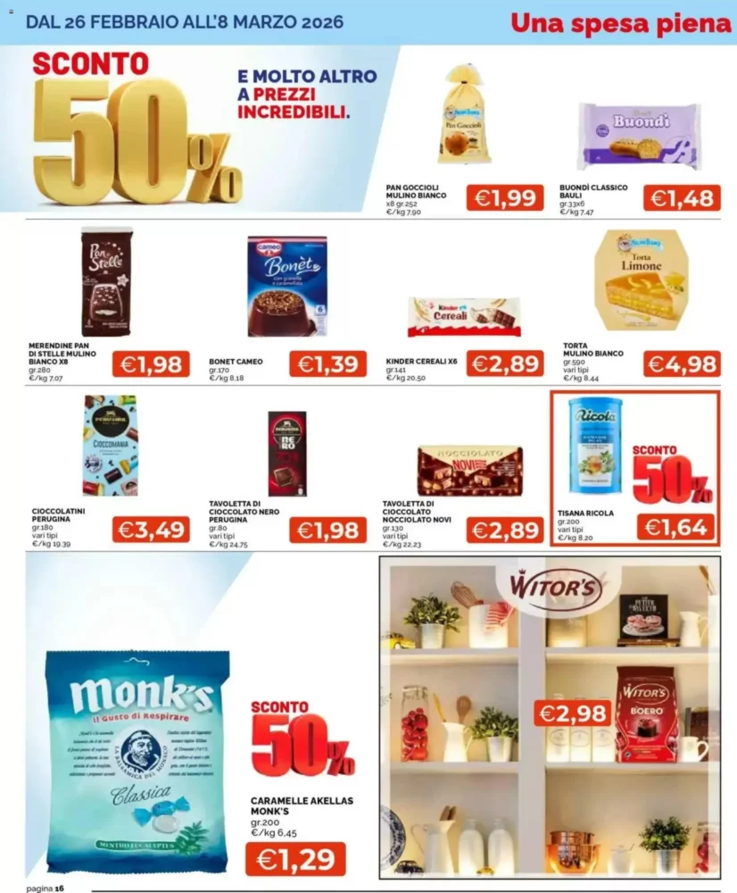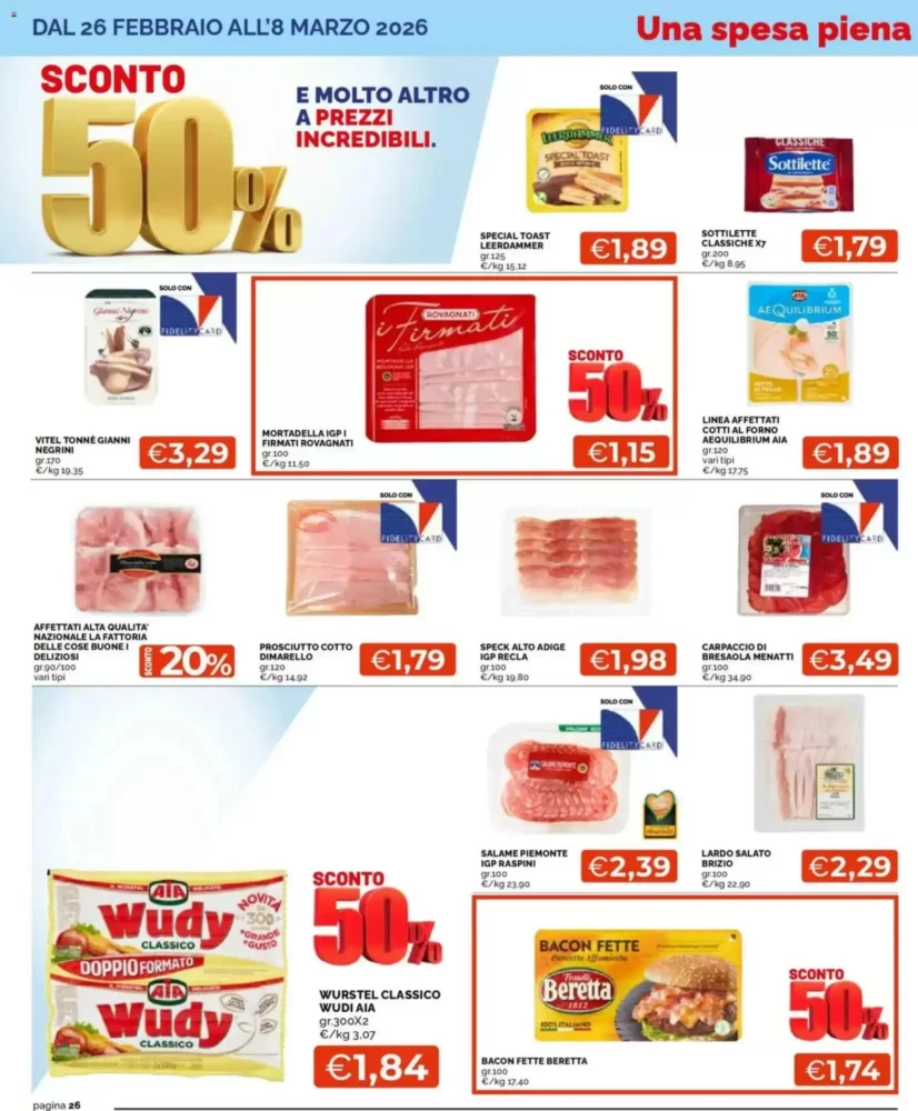Il volantino è valido dal 26 febbraio al 8 marzo 2026 e propone un totale di 498 offerte in tutta Italia, coprendo diverse categorie di prodotto.