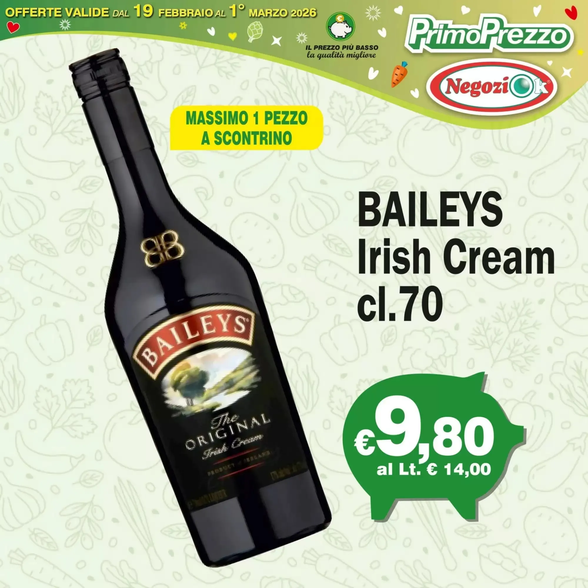 Il Pesto Barilla Genovese con e S/Aglio è in offerta a 1.65€, perfetto per arricchire primi piatti e bruschette. Per chi desidera un tocco di lusso, il Baileys Irish Cream a 9.8€ è ideale per cocktail o dessert. Entrambe le proposte permettono di gustare prodotti di marca senza svuotare il portafoglio.