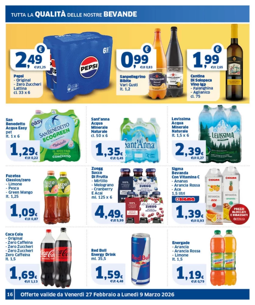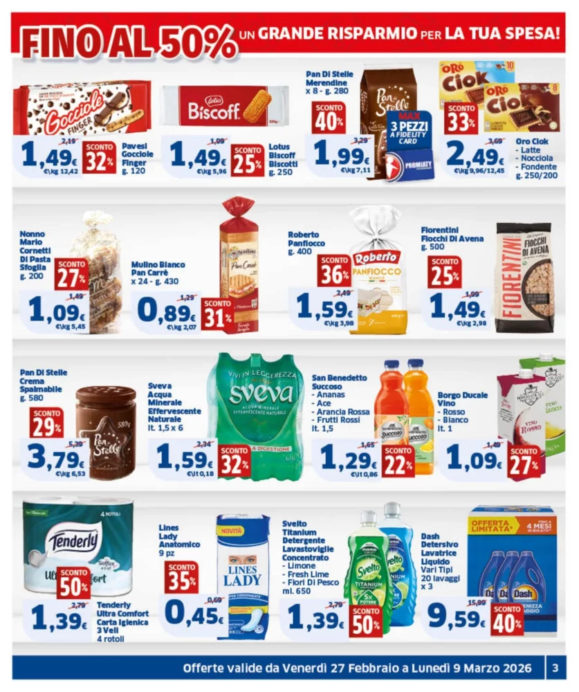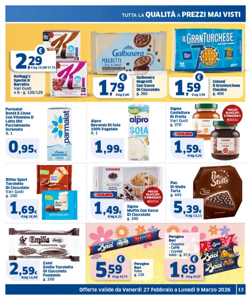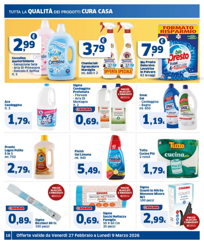 Il nuovo volantino Sigma è disponibile in Italia dal 27 febbraio al 9 marzo 2026, con ben 218 offerte imperdibili su prodotti di uso quotidiano. Scopri subito le promozioni più convenienti e pianifica i tuoi acquisti risparmiando.