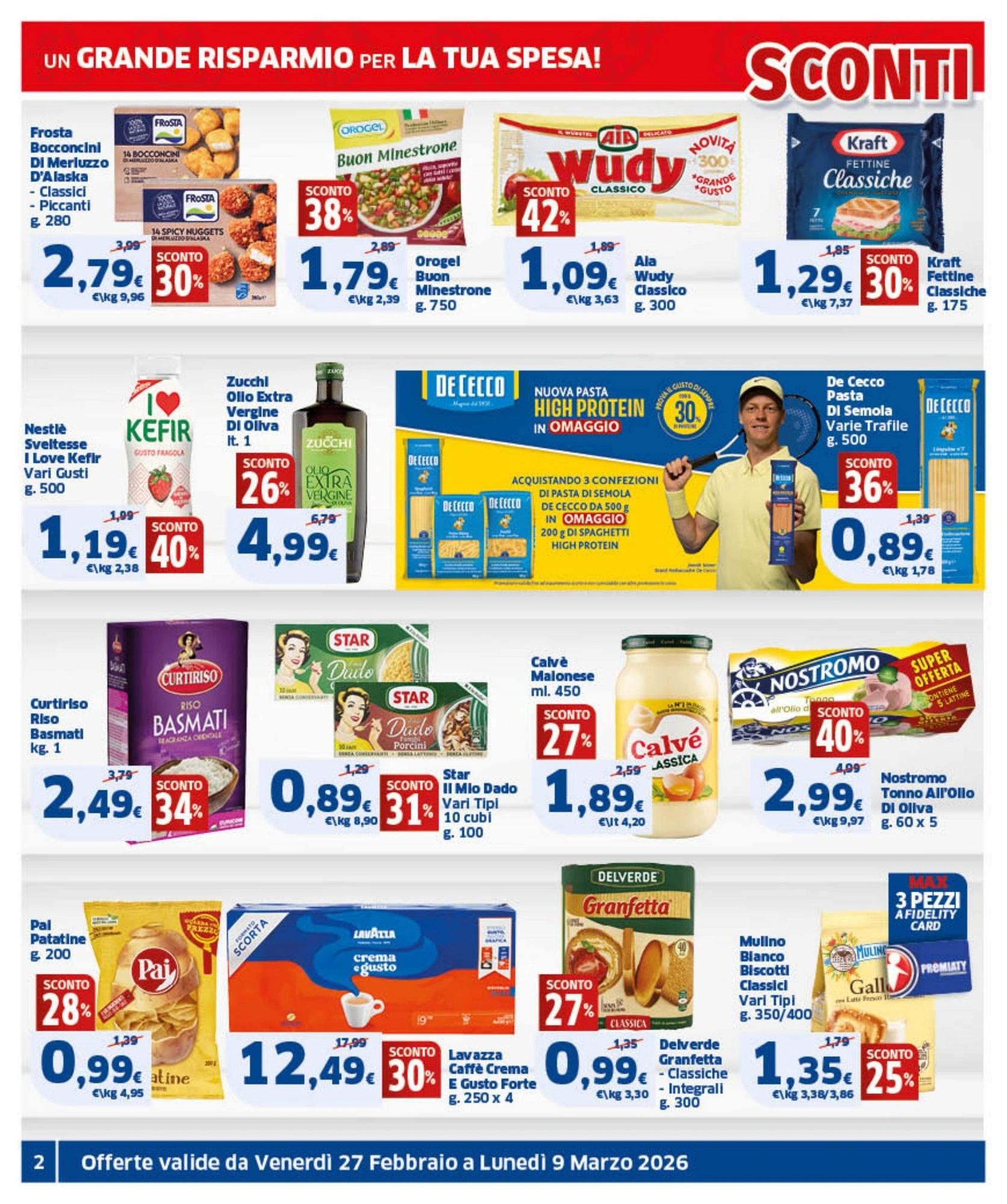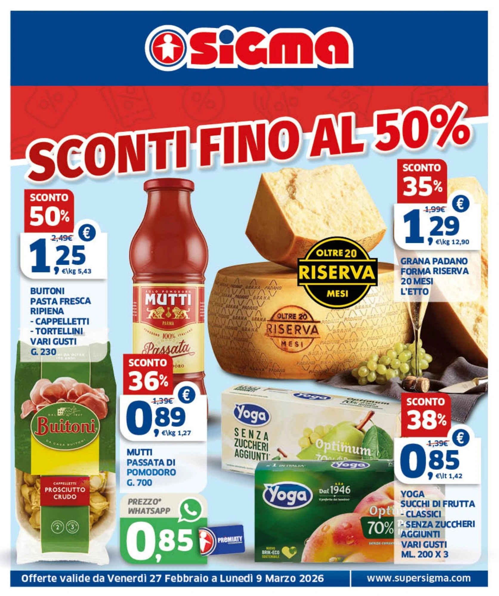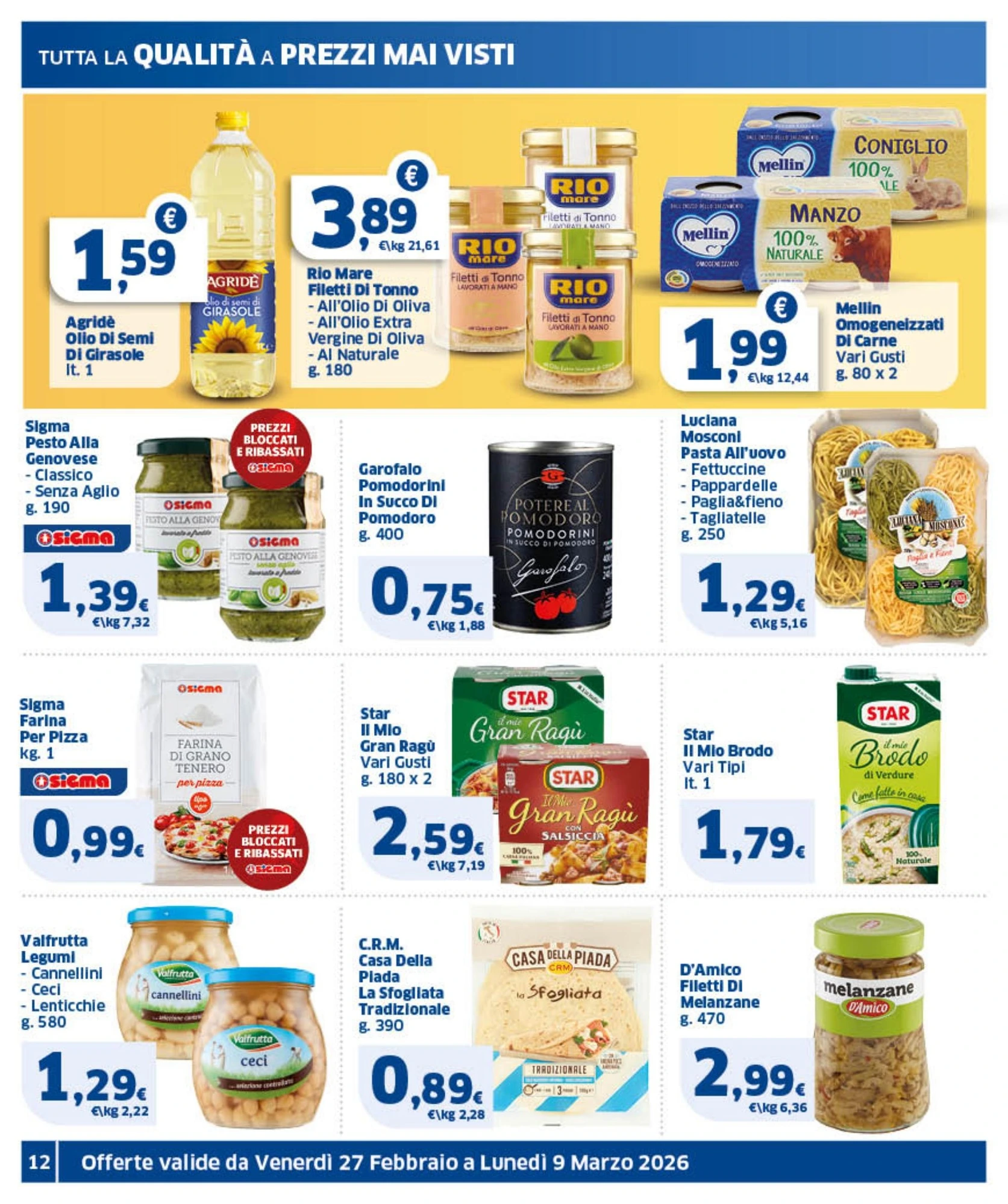 Il nuovo volantino Sigma è disponibile in Italia dal 27 febbraio al 9 marzo 2026, con ben 218 offerte imperdibili su prodotti di uso quotidiano. Scopri subito le promozioni più convenienti e pianifica i tuoi acquisti risparmiando.